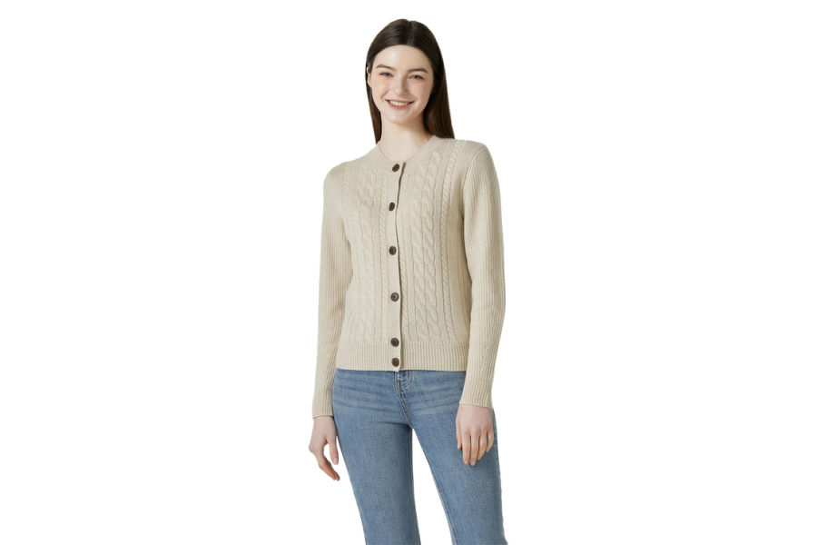 리디아 바인 여성 캐시미어 100% 케이블 가디건