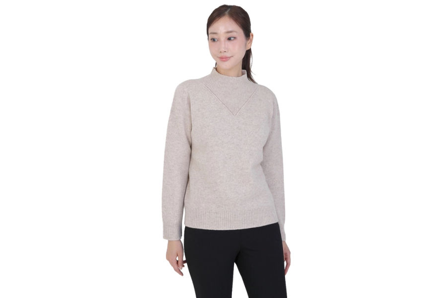 베네뜨 여성 립 블록 하이넥 울캐시미어 풀오버